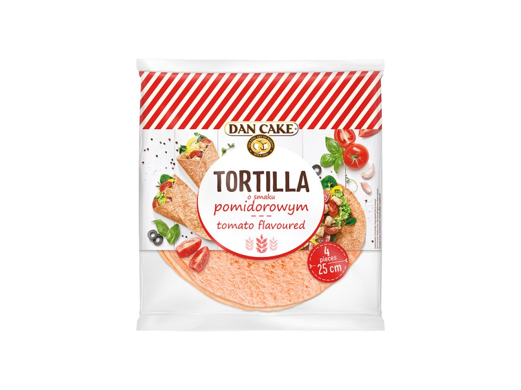 Pšeničné tortillové placky s paradajkovou príchuťou (pekárenský výrobok) 240g.