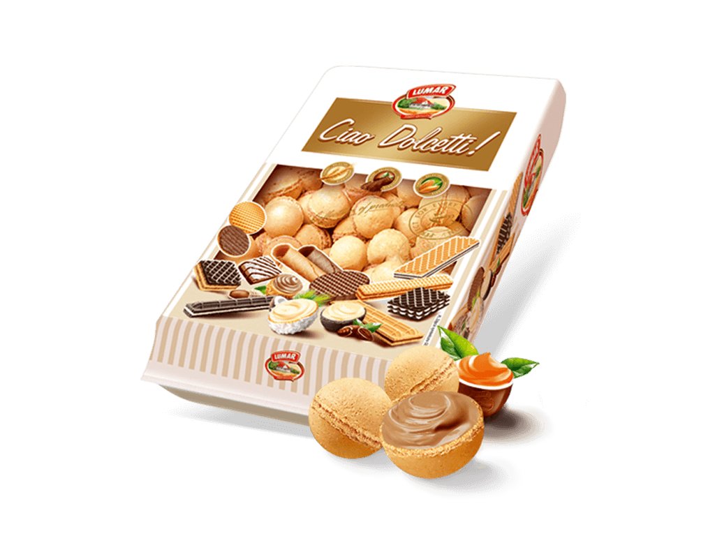 Lumar chutné neobaľované wafľové guličky plnené krovkovou náplňou 400g.