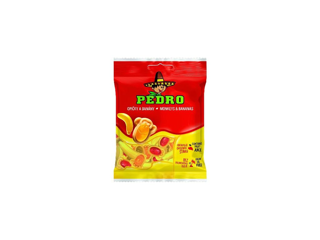 Zloženie : glukózový sirup, cukor, voda, ovocné šťavy z koncentrátu 5% (hrozno, banán 2,1%), želatína, regulátor kyslosti (kyselina citrónová), zahusťovadlo (pektín), arómy, povlaková látka (karnaubský vosk), farbivá (kurkumín, chlorofyly a chlorofylíny, karamel, extrakt z papriky), koncentrát z bazy čiernej.
